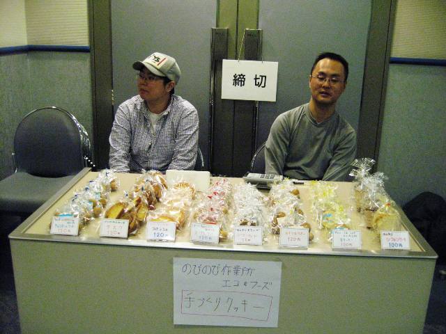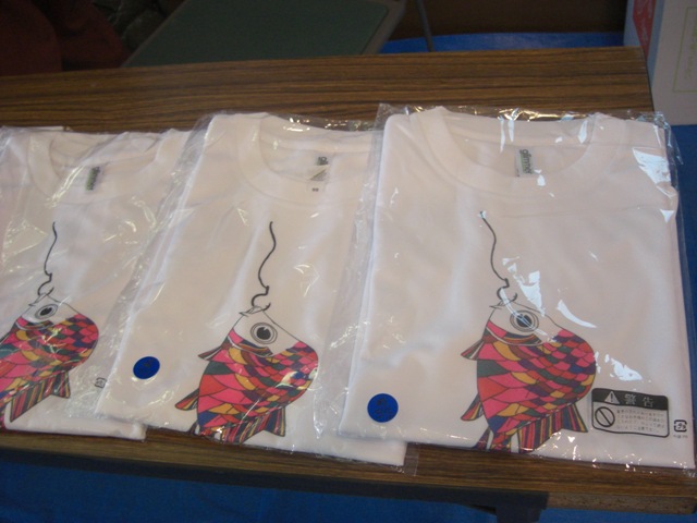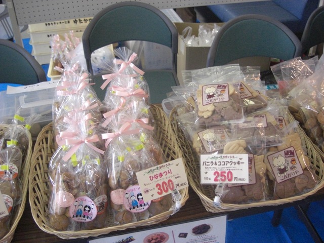会場では主演者の大場さんがデザインしたTシャツやクッキー工房ゆたかの里・のびのび作業所エコ&フーズより
